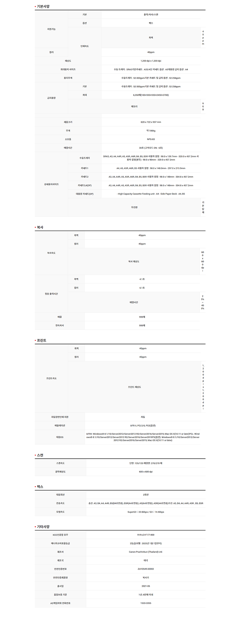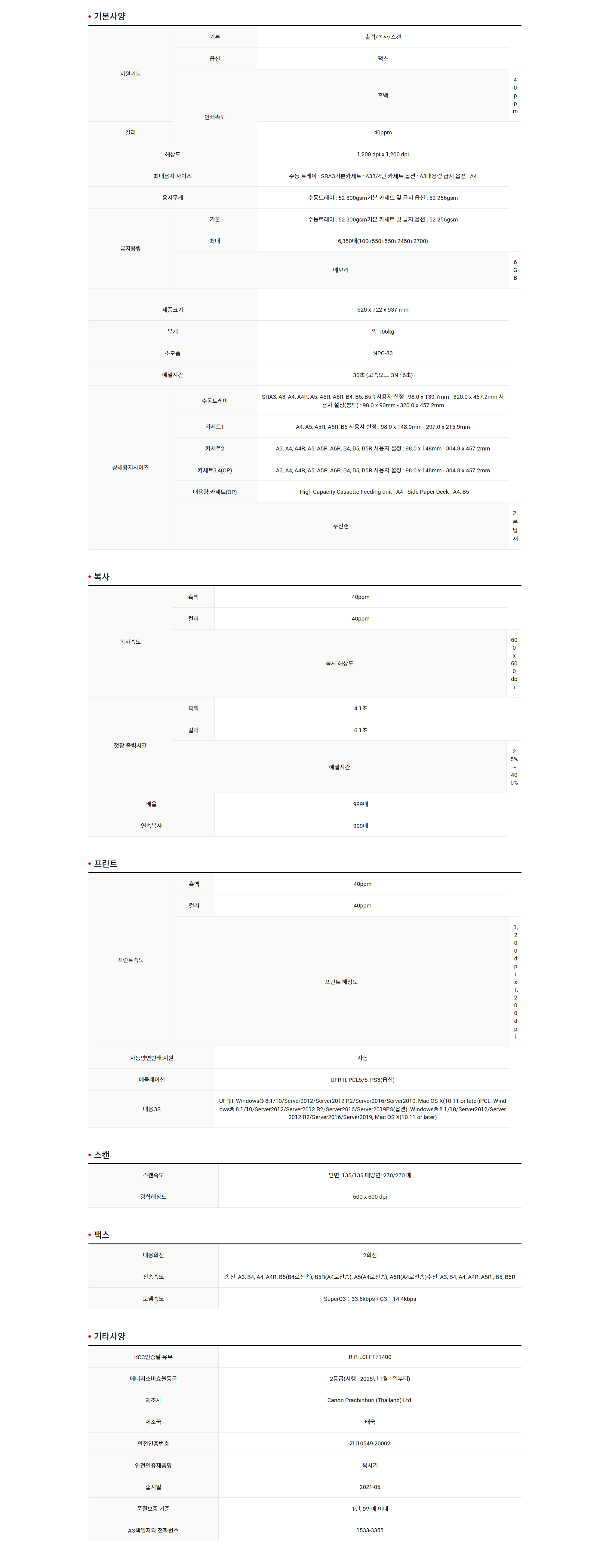 ·»Å»  ij³í IR C5840 º¹ÇձⷻŻ »ç¹«½Ç A3 Ä÷¯ º¹»ç±âÀÓ´ë 3³â¾àÁ¤